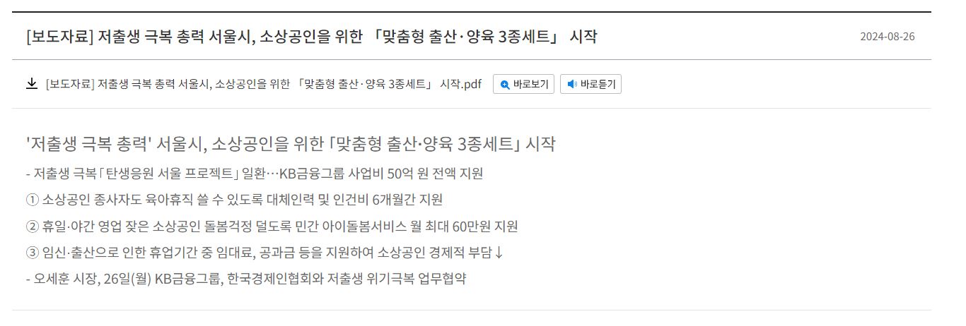 서울시, 소상공인 종사자를 위한 출산·육아 맞춤형 지원 – '출산·양육 3종 세트'로 육아와 일의 균형을 맞추다!