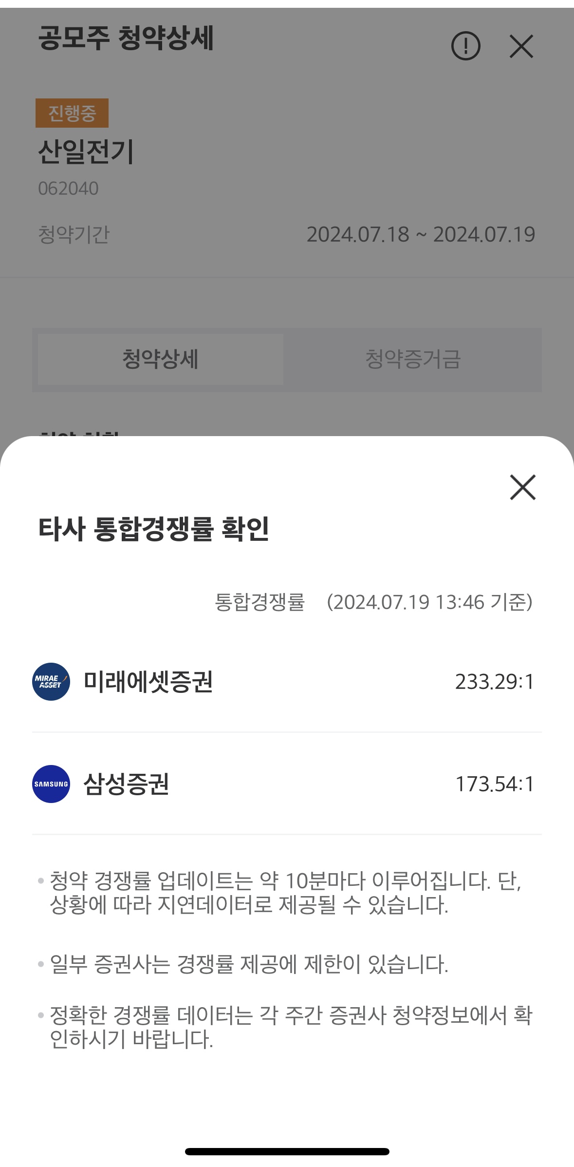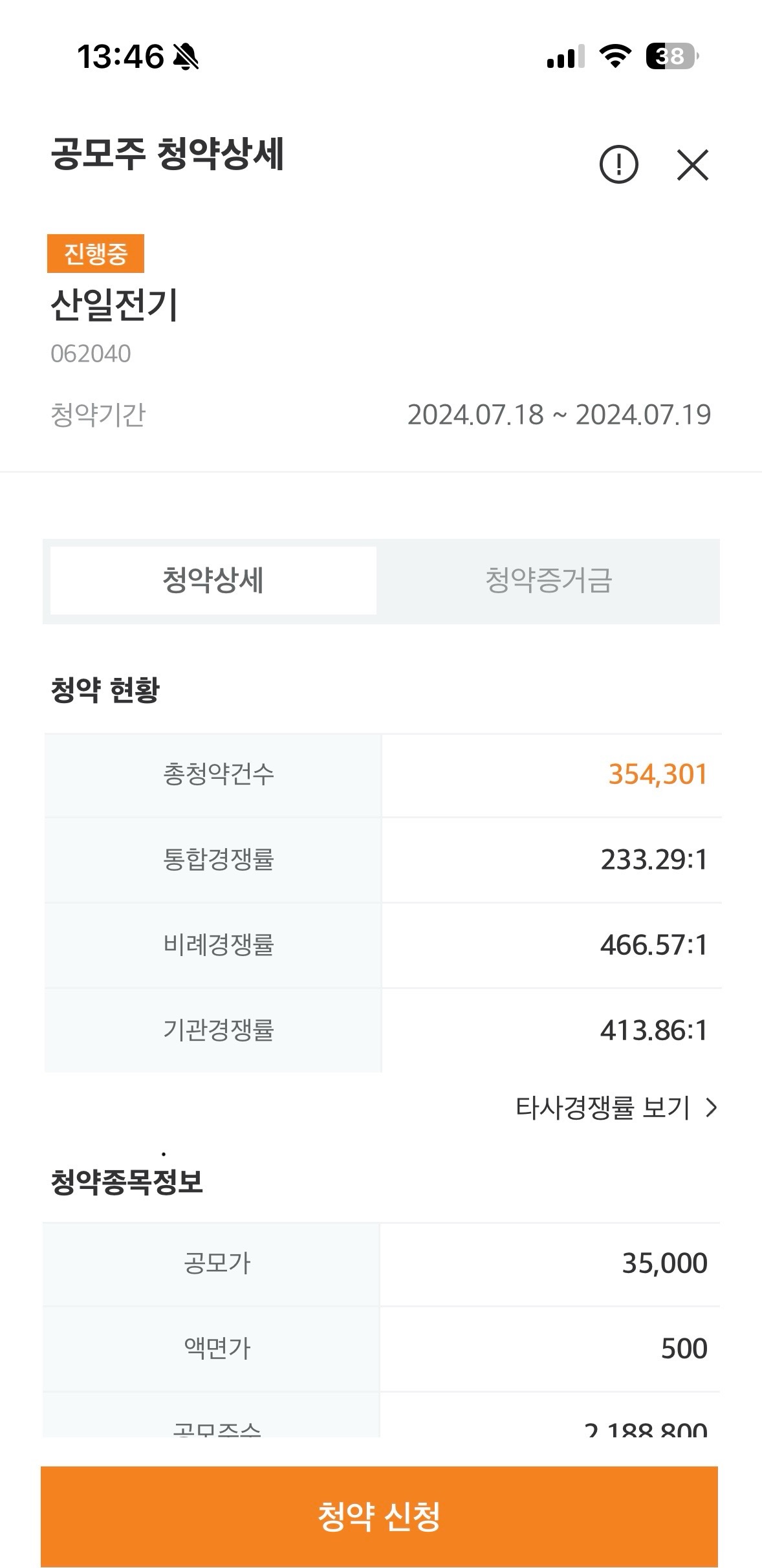 현재 산일전기 공모주 경쟁률은